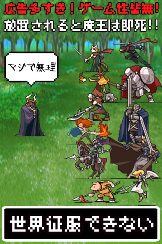 「世界征服できない」は、諦めかけた魔王が再び人間と闘い世界を征服しようとする放置できない放置ゲームです。魔王は24時間放置されると死んでしまいます!