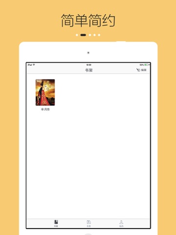 阅读界面友好,三种背景颜色、字体选择,记忆阅读,智能推荐,左右滑动翻页,封面精美。