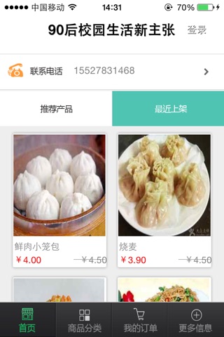 90后新主张,专门为武汉高校生活打造的,该软件包括:首页,首页里面可以查看推荐产品和最近上架,商品分类:可以查看所以的商品,我的订单,可以查看我下过的单,卖吃的