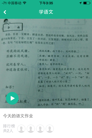 老师拍下文字附上音频发布,查看同学们的跟读并分别打分,以激励同学们进步;