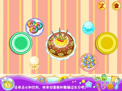 熊猫的生日派对开始啦!你看!多款美味的奶油蛋糕,可爱的甜甜圈和草莓巧克力都在向你招手呢!还有很多意想不到的小礼物。让我们点起蜡烛唱起生日歌吧!祝你生日快乐~