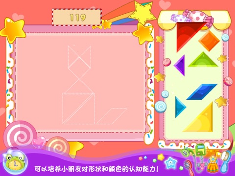 这款游戏能培养小朋友的发散思维,有利于培养人们的观察力、注意力、想像力和创造力。能够把幼儿对实物与形态之间的桥梁连接起来,培养幼儿的观察力、想像力、形状分析及创意逻辑上都有巨大的发展空间。是用以启发幼儿智力的良好伙伴