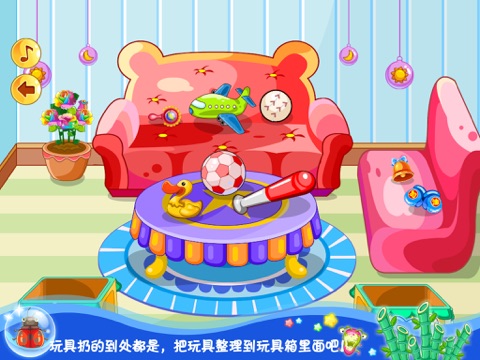 3岁的宝宝正是好动的时期,对周边的事物都有着强烈的好奇新和触碰的欲望,此时此刻如果能够将宝宝的注意力引导到家务整理上面,既可以满足宝宝的好奇欲望和触碰欲望,也可以帮助宝宝对整洁和脏乱的家务情景作出正确的判断。既可以满足宝宝的探索欲望又可以培养良好的家务整理习惯。游戏通过几种日常的情境模拟,丰富的场景内容,让宝宝对家务整理产生兴趣,从而激发宝宝的整理欲望,轻松的养成良好的整理习惯
