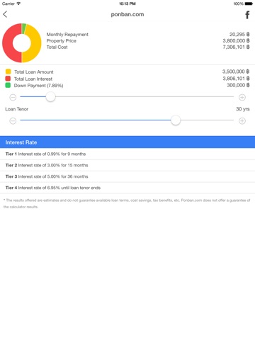 Planing to apply a mortgage to buy a house or a condo in Thailand? "Ponban" is a home loan calculator, especially designed for mortgage calculation for Thailand real estate market.