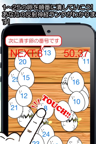 その数字のついた卵を1から25まで順番にタッチして潰していきます。
