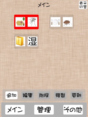 続いて、メイン画面で設置します(用品と場所をセットにする作業)。