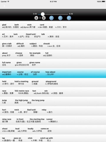 √√本应用收录教育部新课程标准要求初中学生掌握的全部单词和短语,重点词条配有翔实的例句、全真考题,并对易混词语进行辨析,突出词汇的活学与活用,减少复习备考的盲目性,是一本具有超强针对性和实用性的词汇应用软件。