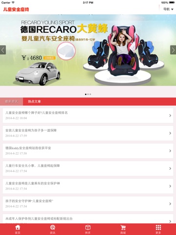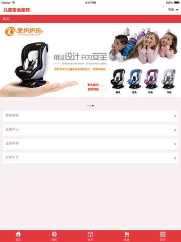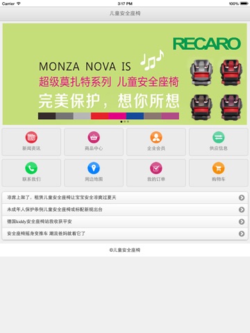 儿童安全座椅APP手机客户端是针对各大中小型企业推出的全新营销平台,在儿童安全座椅APP手机客户端中有大量的安全座椅行业群体企业,更有庞大的客户使用群体,这一方便、快捷、新兴的移动平台具备产品、供求、企业商家、地图导航等强大功能,使得儿童安全座椅APP手机客户端很快成为安全座椅行业中最热门的营销渠道和平台!儿童安全座椅APP手机客户端现在诚招各大中小企业入驻!