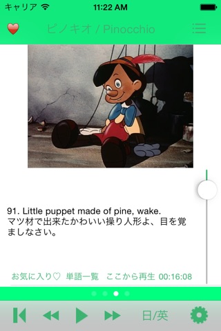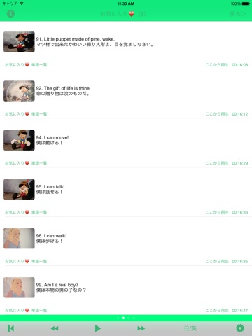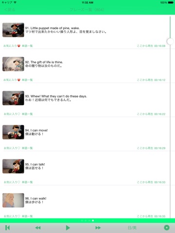 ・フレーズごとに分かれており、簡単に、前や次のフレーズに行ったり来たりできたり、お気に入りのフレーズを登録、選択し、再生できたりします。