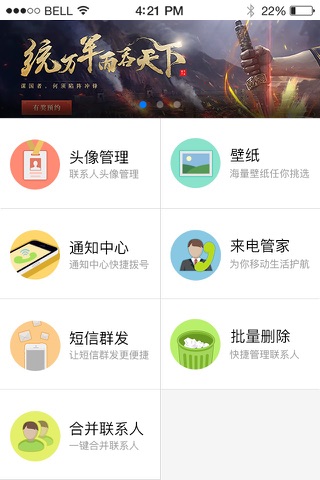 设置联系人头像还要付费?现在,免费的福利来了,批量更换联系人头像,让你的联系人不再单调;几十种头像任你选择,LOMO风,三国风,更有可爱的阿狸和猫咪,动动手指,只需一键,整个通讯录的头像焕然一新!
