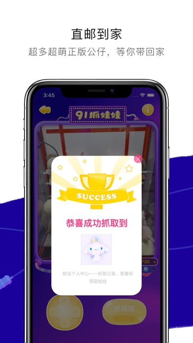 99抓娃娃,是一款真实抓娃娃软件,用手机远程控制娃娃机,超低延迟,足不出户,随时随地抓娃娃,优质娃娃送到家。