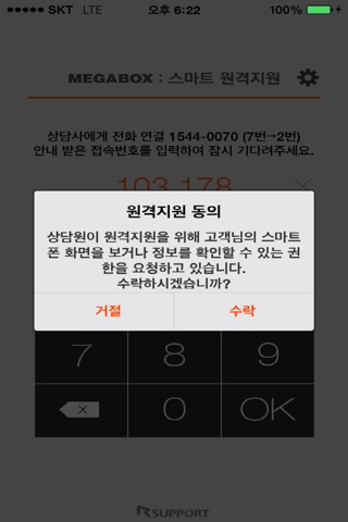 원격지원 서비스는 메가박스 이용 시