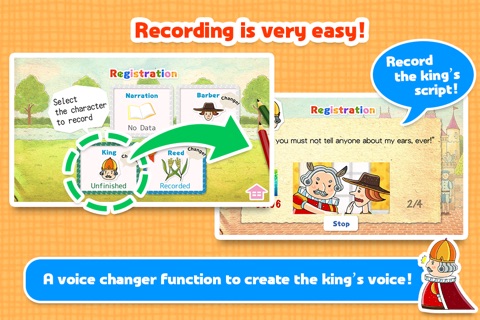 " The King with the Donkey Ears" belongs to the picture book series "Koe-Pale" (Palette of Voice). Now available in Japanese, English and Simplified Chinese, this tool allows children to enjoy the experience of listening and reading aloud. You can not only listen to the story recorded by the narrator, but also record your voice and use the Voice Changer function. With your family, friends, whoever, please enjoy reading aloud and recording to make the story yours.
