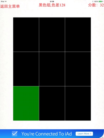 This is a game used for testing you color distinguish ability. Each color will have a level to judge if you are above the normal human color distinguish ability. This game is very easy , just pick up the different color block and finger on it. The right above number is your score. The best score is 12264. I dont think there is any one can get that point.