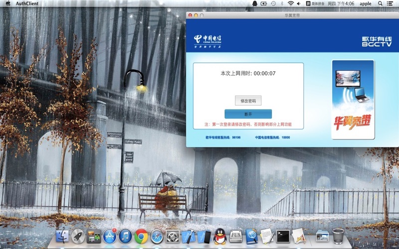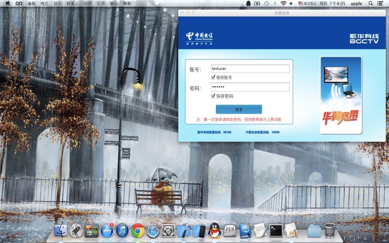华翼宽带客户端,需要使用您的华翼宽带账号,协助您完成宽带拨号认证。