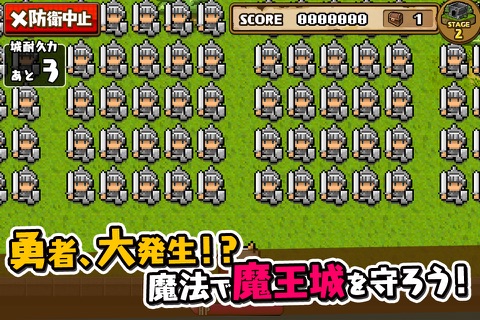 画面の左右をタップして勇者の攻撃をかわしつつ、魔法で城を防衛しよう!