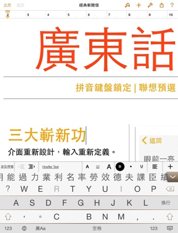 i really appreciate the idea of the app. it does make typing chinese faster and easier. the spelling of most of the chinese characters is quite similar to what i always use. but here are two points that can be improved. firstly, the keyboard. for me, its a bit too big. i mean the size of the keys. i prefer it to be the same size of the original iphone keyboard. also, the transition of this keyboard and other build-in keyboard. its quite "lag." secondly, the characters. i found the spelling of some characters is a bit different from what i use. its too vague if i say "what i use." lets make it clearer. the spelling that i use is like the one on Google Translate. maybe its better to check out the spelling that it uses. i believe its spelling is much more popular. anyway, this app is absolutely the best cantonese typing app!!