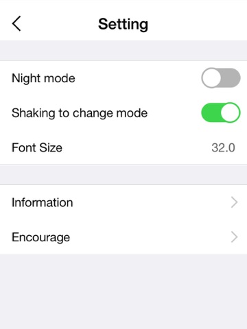 This application subject style USES simple black and white pattern, custom sense is very strong, the user can customize the font size, night mode, shake mobile switching mode, custom home page display content, etc.