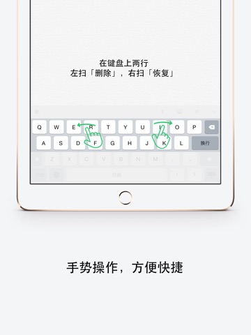 用「扫动」手势来完成「删除」、「恢复」,用「滑动」手势来移动光标