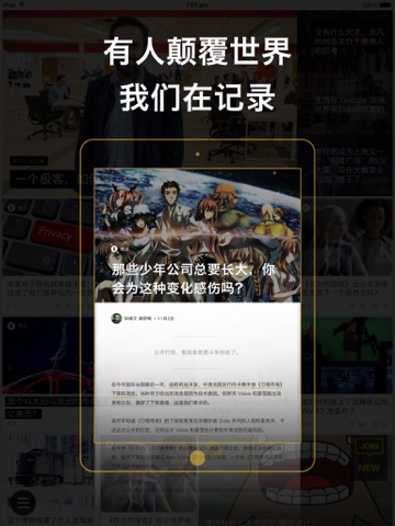 - 好奇心实验室,我们通过 18 天不出门之类的实验,探寻科技与商业的发展对每个人生活带来的影响,探寻新闻事件背后的影响。
