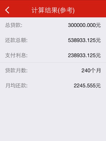此应用中的所有情况均测试和分析过,月还款额不会偏差超过0.01元,总还款额偏差则不会超过1元。