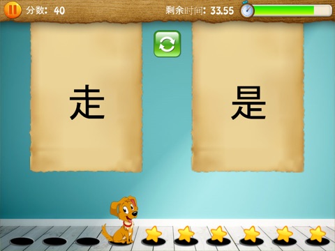 这是一场与时间赛跑的游戏!玩家需要点击与读音相符的汉字卡。每答对一个答案,玩家能够赢得一颗星星。当获得30颗星星时,一把特殊的钥匙会将笼子打开并放出一只小动物。从可爱的小狗到笨笨的小企鹅,16只小动物需要一个汉字阅读小英雄将他们从动物绑架者的手中解救他们!每当玩家到达一个等级时,能够获得一个额外的“笨狗先飞”奖励游戏。