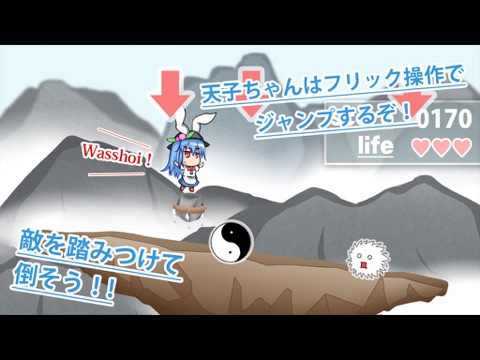 天子ちゃんがユラユラと移動しながらチクワとかダンベルを避けたり毛玉を踏み潰したりするゲームです。