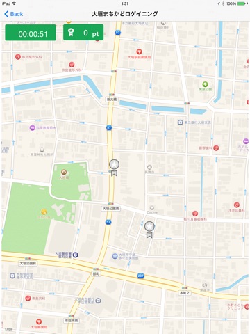岐阜県大垣市で、制限時間内に、各チェックポイントを、ヒントを元にして、どれだけ到達できるかを競うために使用するアプリです。