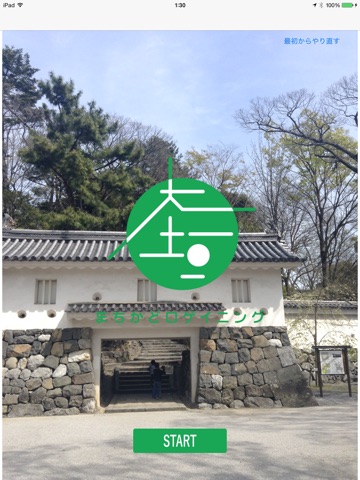 ゲームは、ゲートに用意されたiBeaconを読み取って開始するか、あるいは、スタートボタンをタップすることで開始します。チェックポイントは、木製看板に刻印されたQRコードを読込みながら進め、60分後に終了となります。
