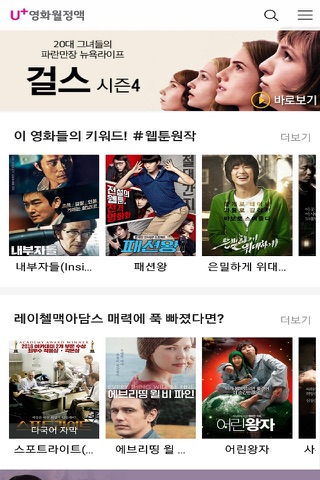 U+영화월정액 앱은 U+모바일tv 앱으로 통합되었습니다.