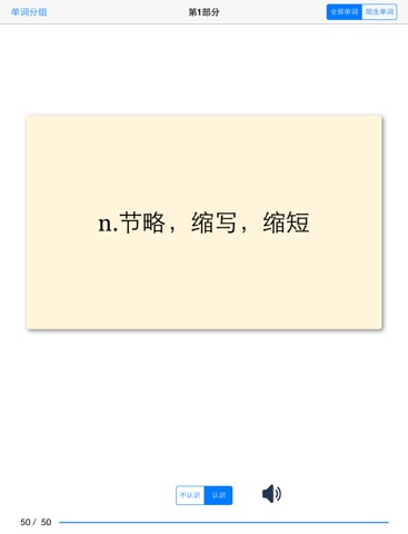 可以选择学习全部单词,或者只学习不会的单词