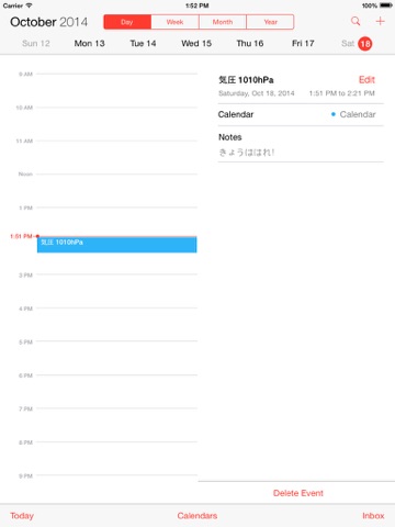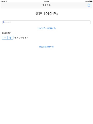 4. If pop up calendar error, you check setup=>privacy=>calendar=>気圧日記 is enable.