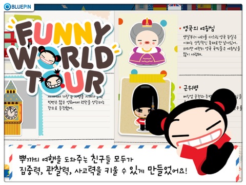 뿌까 세계여행 앱은 책으로는 할 수 없는 풍부한 사운드와 흥미로운 인터렉션이 가미되어 보다 효과적이고 재미있게 학습하실 수 있습니다.