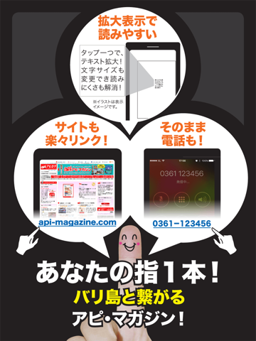 るるぶ、まっぷる、じゃらん、ことりっぷなどの旅行ガイドブックと、現地無料情報誌のアピ・マガジンのこの無料アプリを手に入れれば、あなたのバリ島旅行も充実間違い無し!
