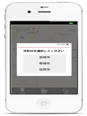 画面下部に表示しているメニューの市町村アイコンをタップし、