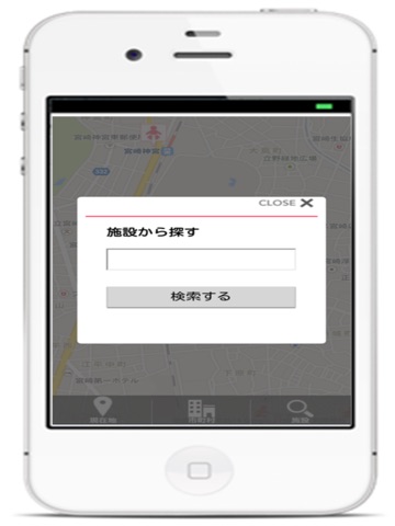 画面下部に表示しているメニューの施設アイコンをタップし、