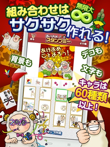 Make your New Years Greetings with original stamps. Send them to your friends by LINE, KakaoTalk, Facebook .etc.