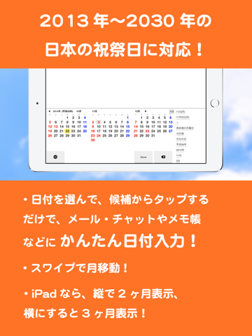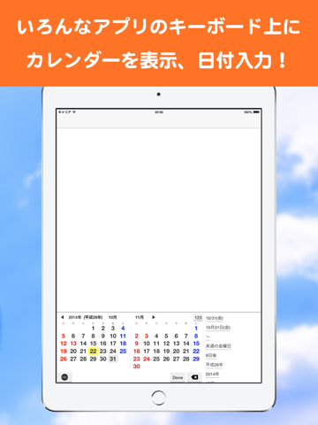 キーボード上にカレンダーを表示し、いろいろな書式で日付入力を行うことができる、iOS8用サードパーティ製キーボードです。