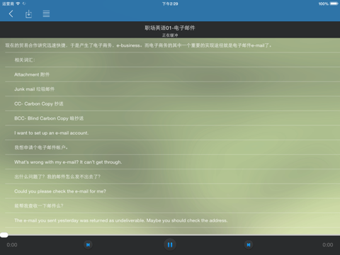 2、支持离线学习,本地音频让你从此远离烦人的网络,真正实现离线学习,同时支持后台播放,随时随地播放,省电又省心 ;