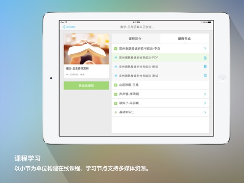 彩虹学堂以节点为单元构建在线课程,学习节点支持多媒体资源,测试节点检验学习效果。节点之间创建清晰的学习路径,形成闯关式学习模式或自测式学习模式。