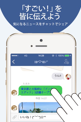 ・ボタン一つで簡単に、チャット画面にニュースを共有可能!
