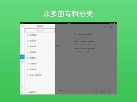 - 收入海量日常会话训练、名人演讲资源