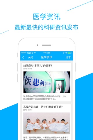 - 即时聊天,医生可以跟同行或感兴趣的患者进行即时聊天,区分私人空间的社交,还能通过qq、微信、朋友圈来邀请同行。