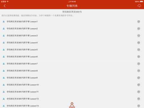 2、支持离线学习,本地音频让你从此远离烦人的网络,真正实现离线学习,同时支持后台播放,随时随地播放,省电又省心 ;