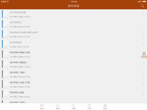 2、支持离线学习,本地音频让你从此远离烦人的网络,真正实现离线学习,同时支持后台播放,随时随地播放,省电又省心 ;