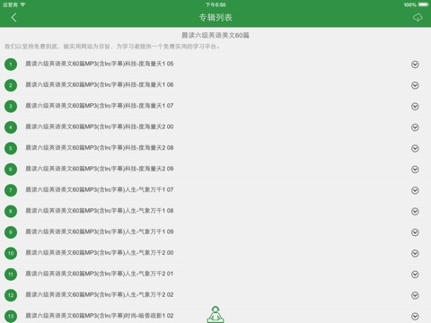 2、支持离线学习,本地音频让你从此远离烦人的网络,真正实现离线学习,同时支持后台播放,随时随地播放,省电又省心 ;