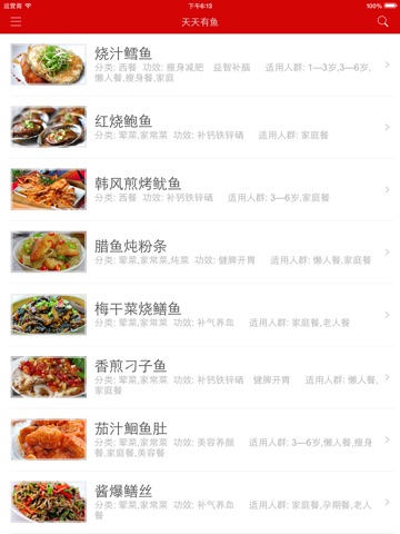 本APP告诉你如何制作各种不同口味不同功效的鱼的做法,比如酸菜鱼、水煮鱼、红烧鱼、清蒸鱼、糖醋鱼、烤鱼等。