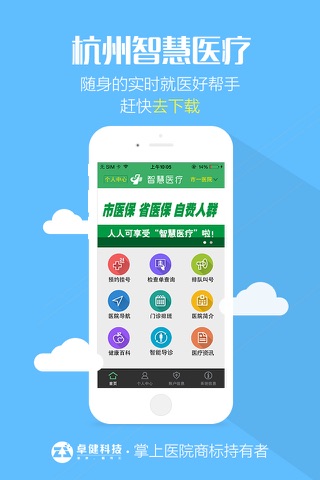 掌上就医一卡通,登录“杭州智慧医疗”APP后即可自主选择医院、查询医院相关信息、预约各院专家、查询各院报告单等,实现杭州掌上就医一卡通。
