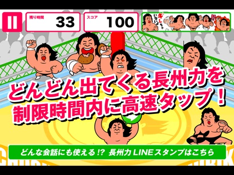 LINEスタンプで人気爆発中の「長州力」が登場する、タップ操作のみのお手軽ゲーム!