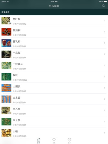 《中药词典》以中药拼音首字母索引分类,涵盖20余大类、近千种中药的介绍。